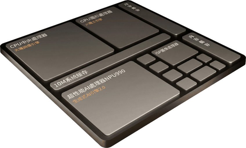 CPU 全大核性能 PC 級 | GPU 渲染性能遊戲主機級 | 雙 NPU 超性能 + 超能效架構